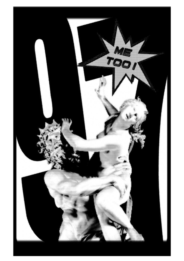 During my research I discovered a shocking statistic that 97% of women in the UK between the age of 18 - 24 have experienced some form of sexual assault. My intention to shed light on this statistic greatly affecting young women was through reinterpretating "The Rape of Proserpina" by Gian Lorenzo Bernini. By incorporating elements of the Me Too Movement and using the statistic as a border in a pop art-like manner, I attempt to draw attention to the pervasive nature of sexual assault and rape culture in society."The Rape of Proserpina" depicts the mythological abduction of Proserpina by Pluto, the god of the underworld. By reappropriating this imagery and overlaying it with the phrase "Me Too" and the stark statistic of 97%, I am boldly making a statement about the prevalence of sexual violence and the collective experiences of women. The use of pop art-like elements serves to make the message more accessible and visually impactful, drawing viewers in and encouraging them to confront the uncomfortable reality of sexual assault. By referencing both classical art and contemporary movements like Me Too, I am highlighting the timeless nature of this issue and the urgent need for societal change.