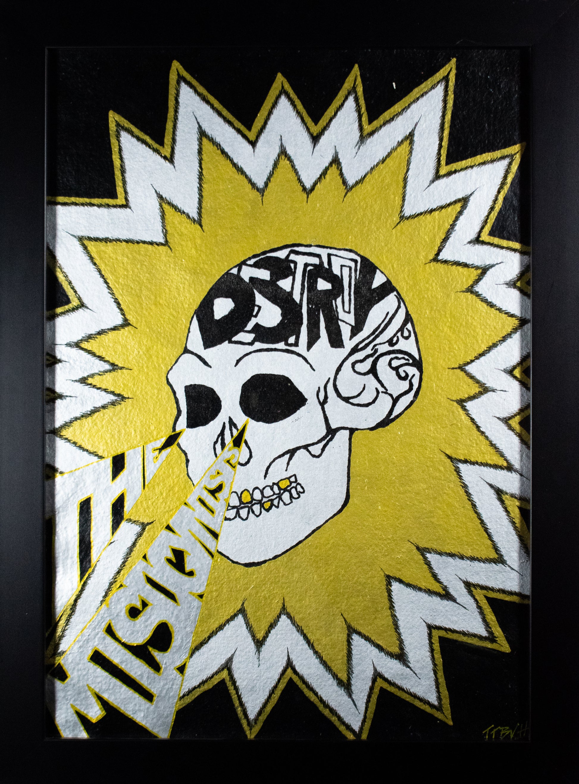 Screen Print, Acrylic and Ball Point Ink on Recycled Cotton Rag Card.